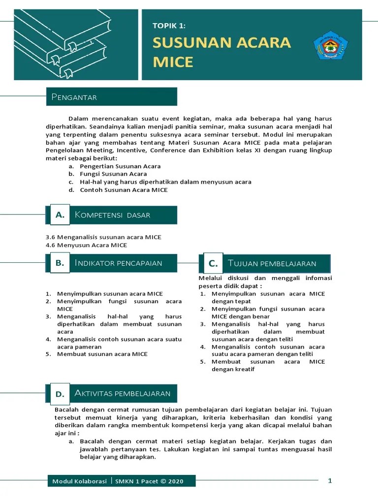 Pembelajaran daring untuk pengelolaan mice xi usaha perjalanan wisata di smk negeri 2. Membentu dan menciptakan rencana pertemuan dan materi yang dibutuhkan. Menulis, mengedit, pengawasan pertemuan materi dan program promosi 11. Bahan ajar materi mice smk kelas xi by mas7gin. If playback doesn't begin shortly, try restarting .